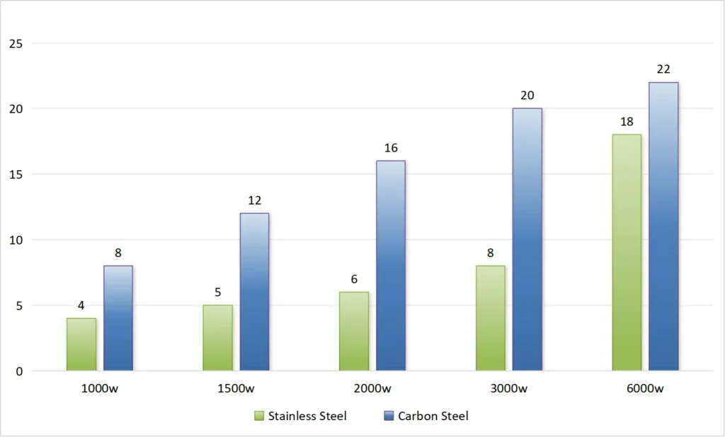 Different thickness needs different laser power.